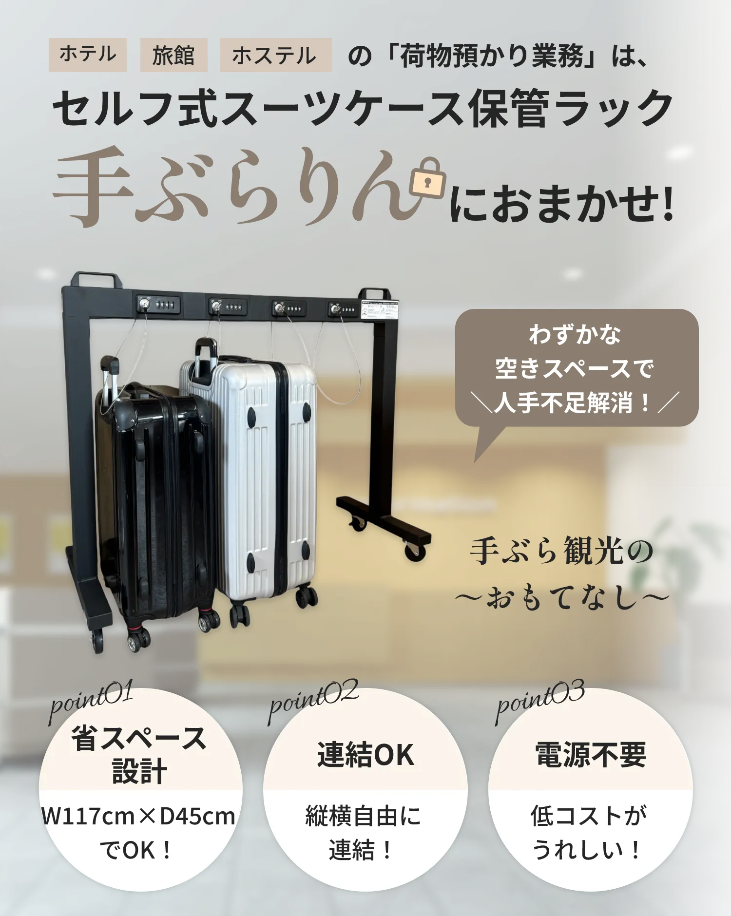 - 荷物預かりサービスをホテルの魅力として積極的にPR出来ます。